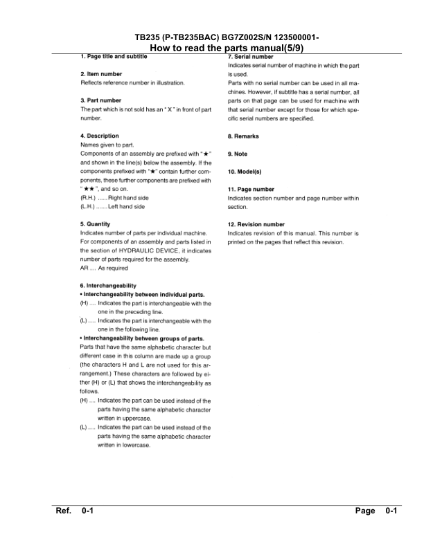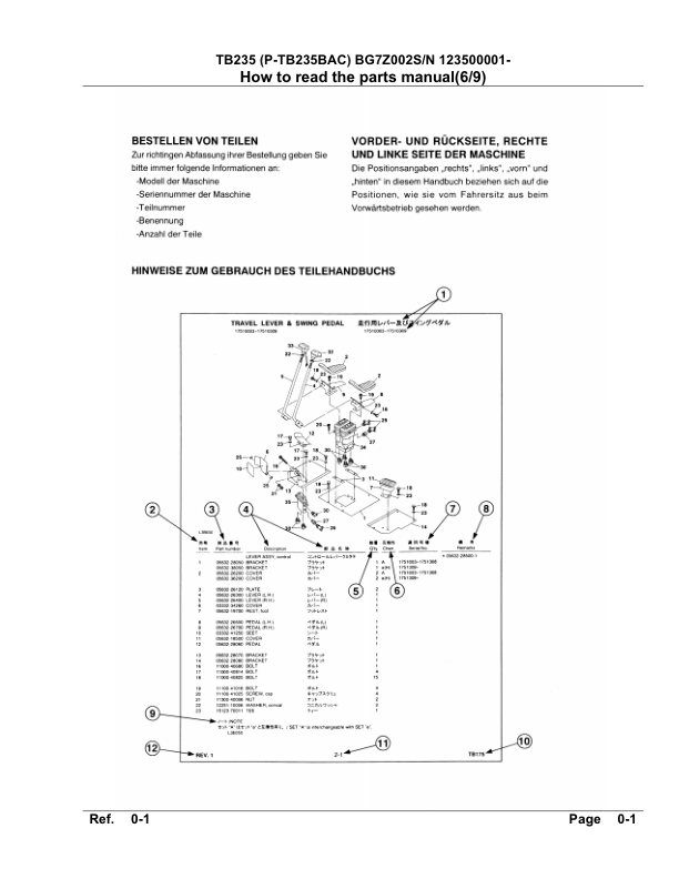 Takeuchi TB235 Excavator Parts Catalog