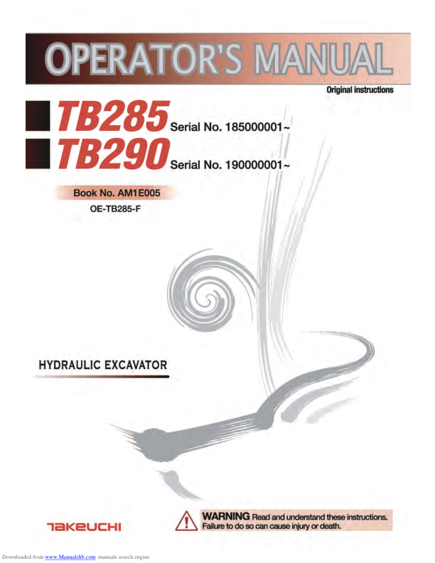 Takeuchi TB285 Compact Excavator Operators Manual This manual provides essential information for the safe and efficient operation of the Takeuchi TB285 compact excavator. It covers operating procedures, maintenance schedules, safety guidelines, and troubleshooting tips to ensure optimal performance and longevity of your machine. Takeuchi TB285 Compact Excavator Operators Manual This comprehensive guide is designed to help operators understand and properly utilize the Takeuchi TB285 compact excavator. It includes detailed instructions on operation, maintenance, and safety protocols for maximizing productivity and minimizing downtime.