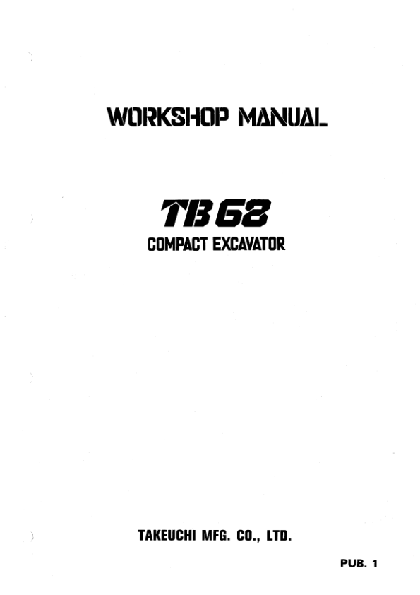 Takeuchi TB68 Compact Excavator Workshop Manual