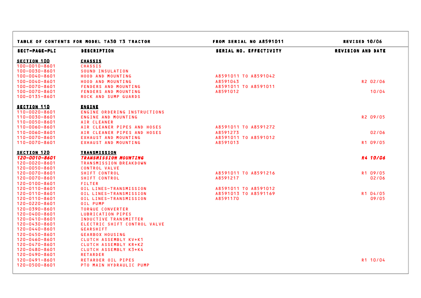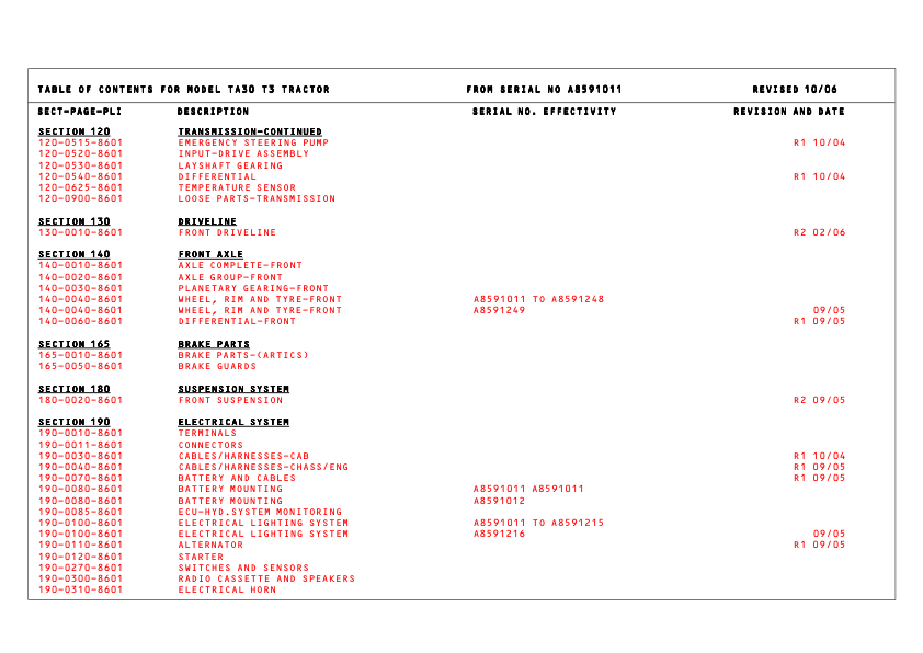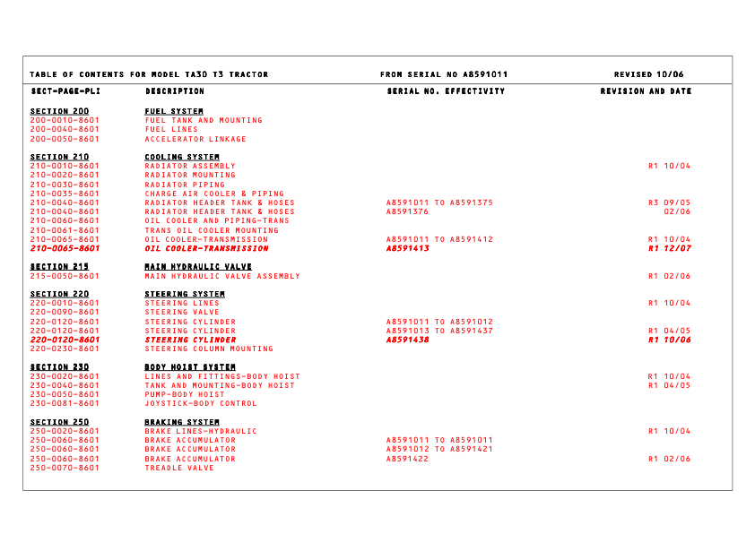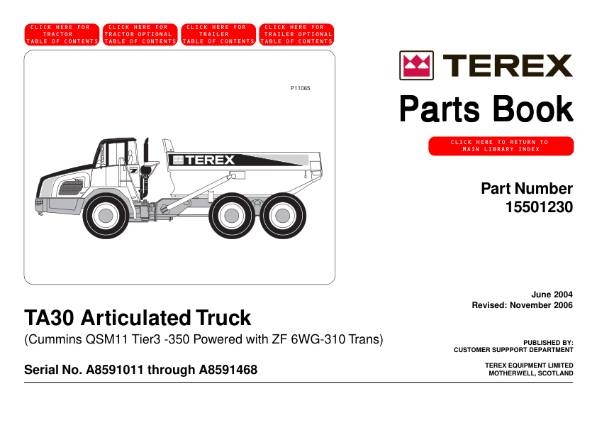 TEREX TA30 Articulated Truck Parts Catalog SN A8591011-A8591468