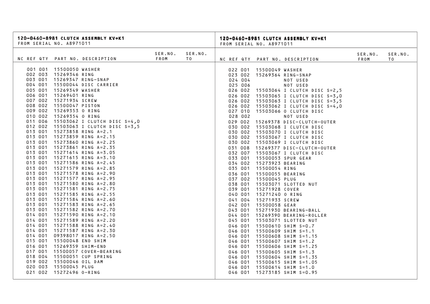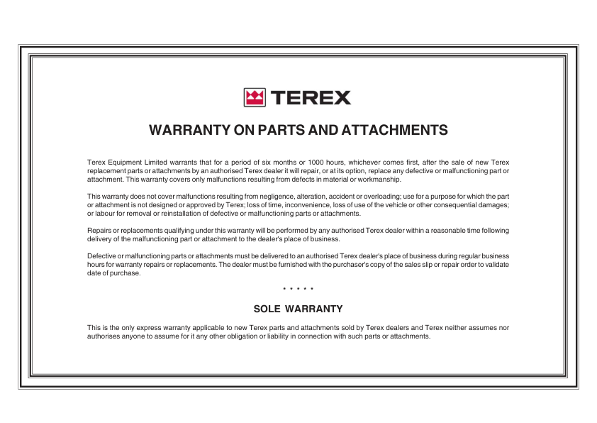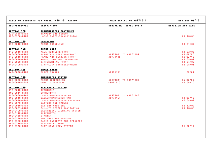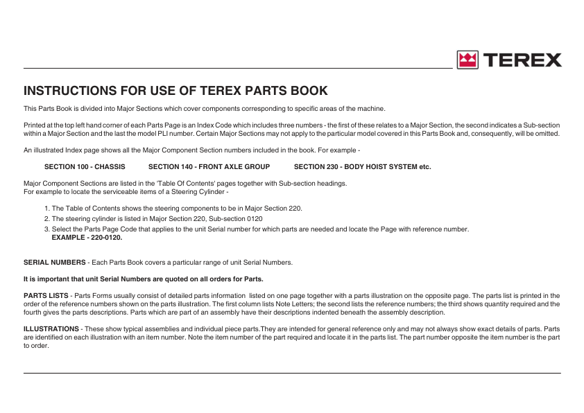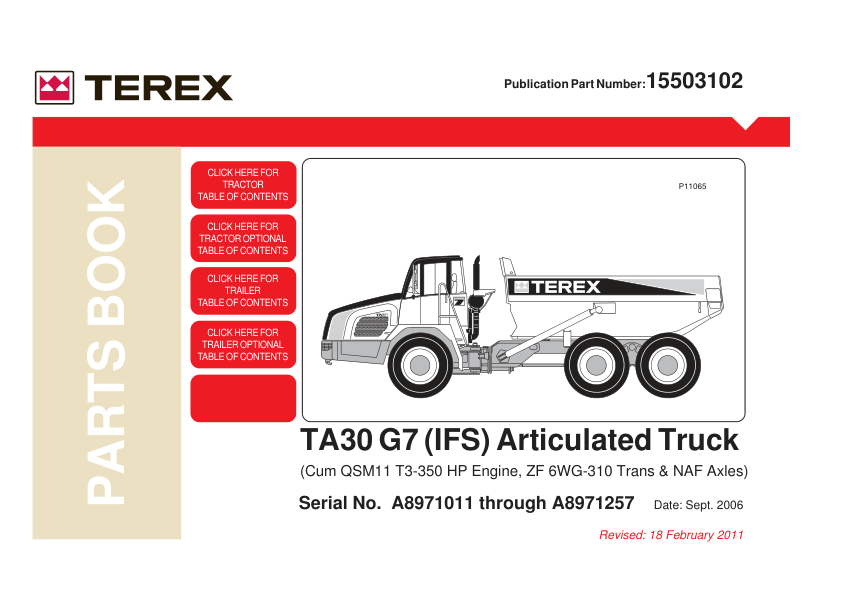 TEREX TA30 G7 IFS Articulated Truck Parts Catalog SN A8971011-A8971257