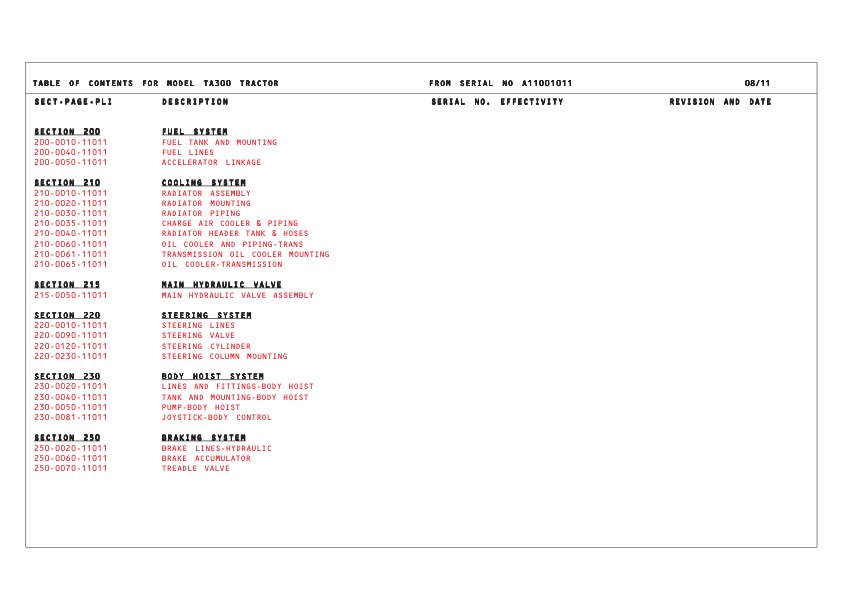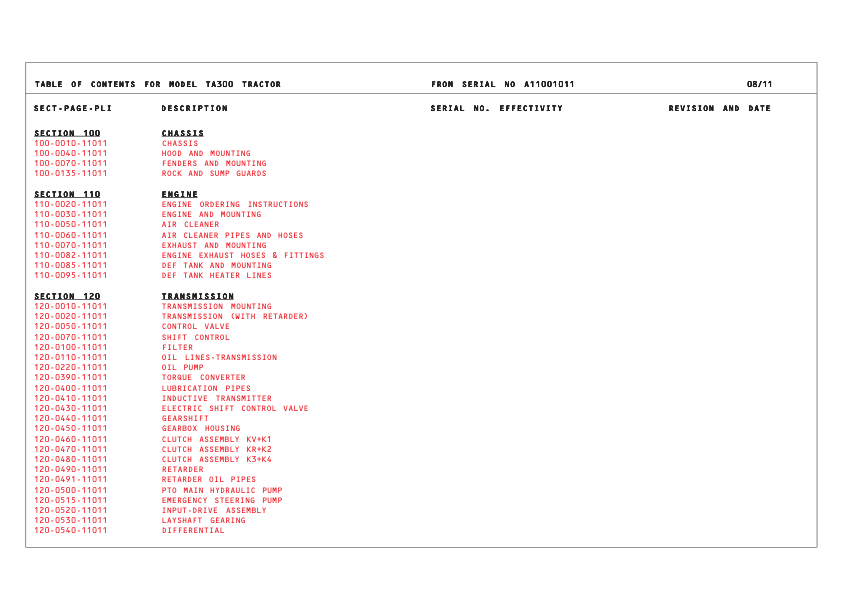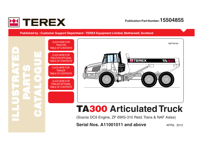 TEREX TA300 Articulated Truck Parts Catalog SN A11001011 and Above