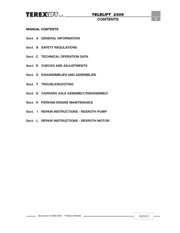 TEREX Telelift 2306 Telehandler Workshop Manual