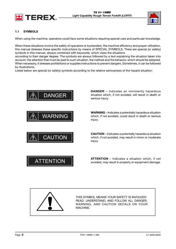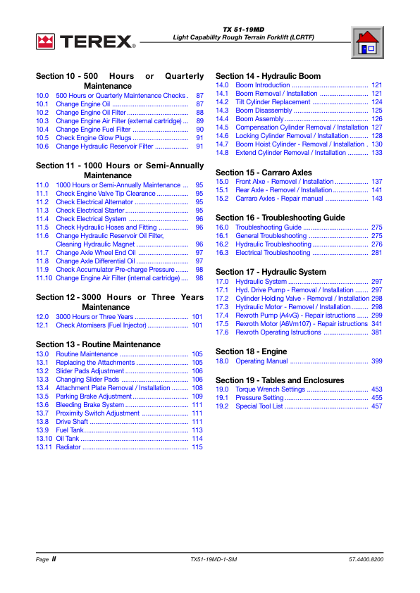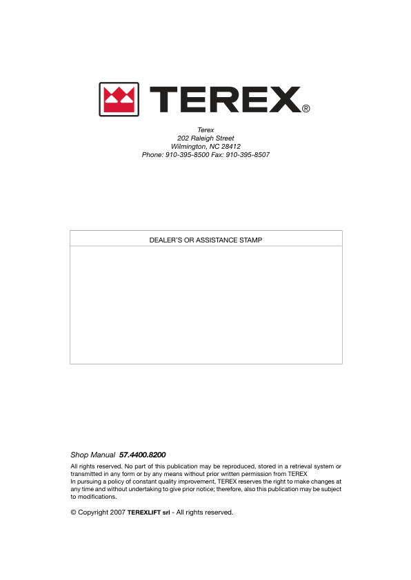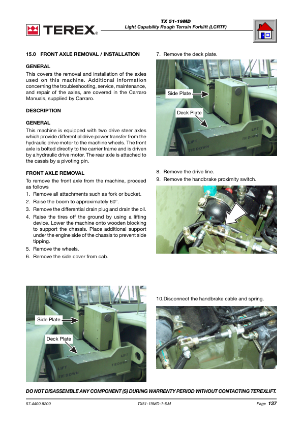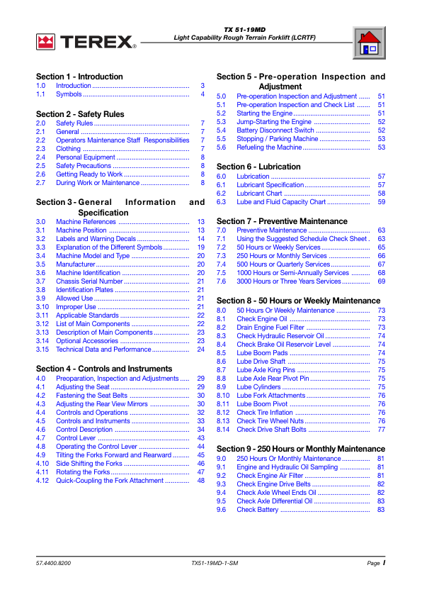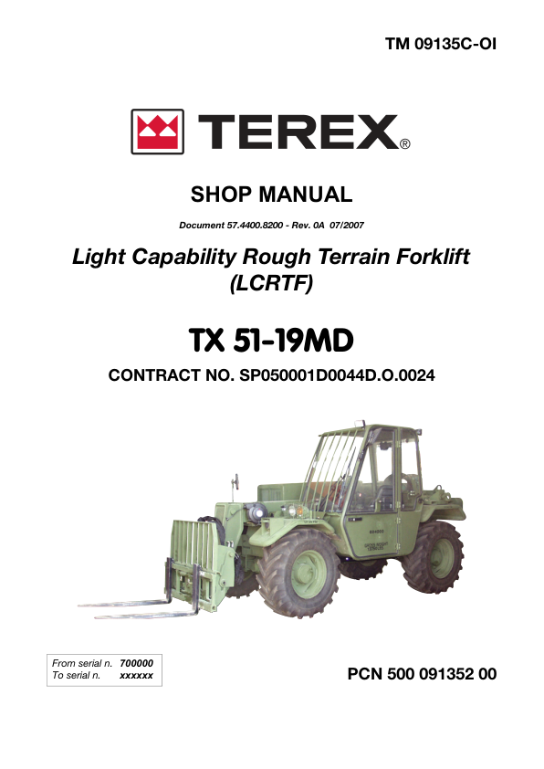 TEREX TX 51-19MD Rough Terrain Forklift Shop Service Manual 2007