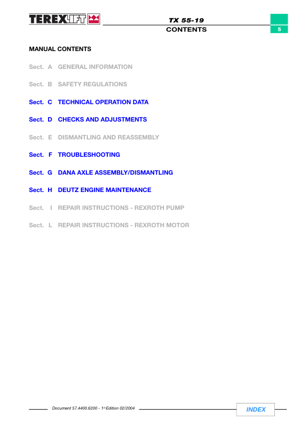 TEREX TX 55-19 Telehandler Workshop Manual 2004