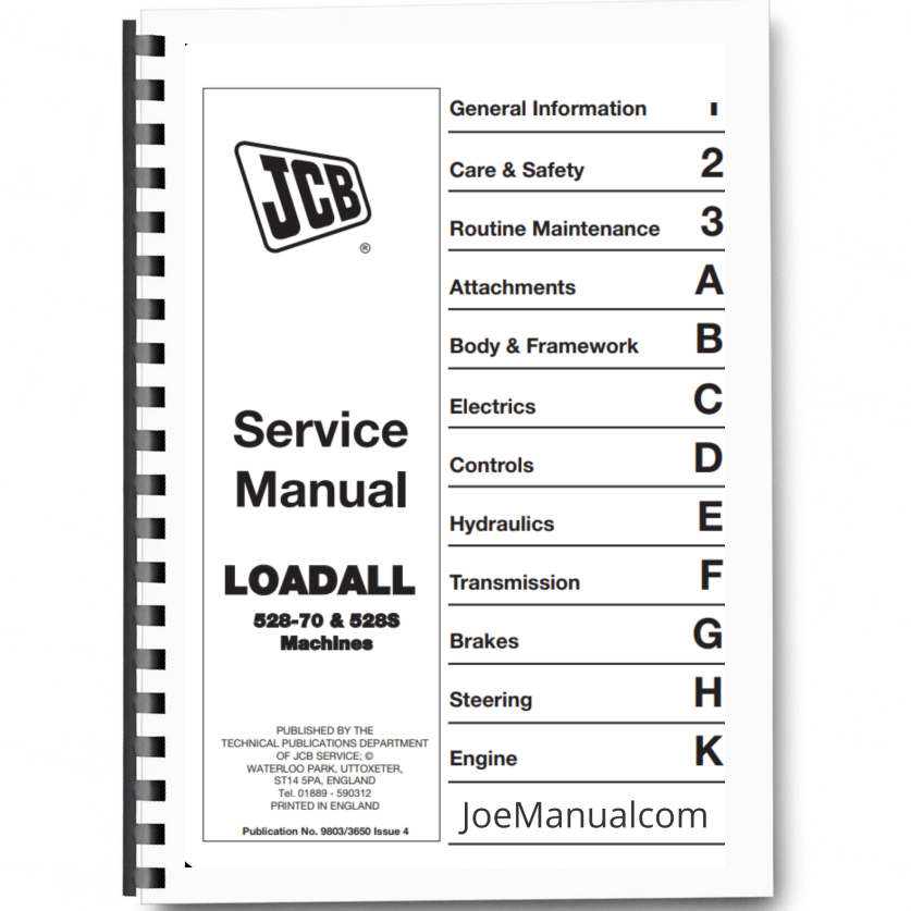 The The JCB 528-70 (SN 796000+) and 528S (SN 796102+) Service Manual 9803/3650 is a detailed guide for the maintenance, repair, and servicing of these specific JCB telehandler models. It provides comprehensive instructions on diagnosing and repairing key components such as the engine, hydraulics, transmission, and electrical systems. The manual includes step-by-step procedures, troubleshooting tips, technical diagrams, and specifications to ensure accurate repairs. This service manual is an essential resource for technicians and mechanics to keep the JCB 528-70 and 528S telehandlers running efficiently and reliably.