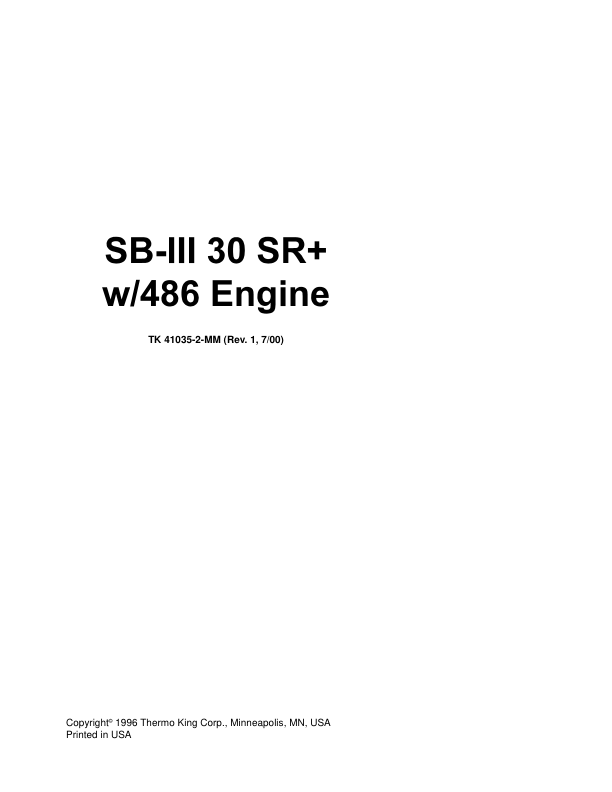 Thermo King SB-III 30 SR Plus Refrigeration Units Service Manual
