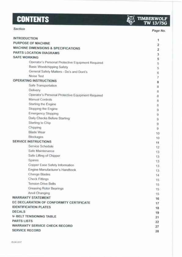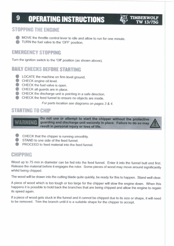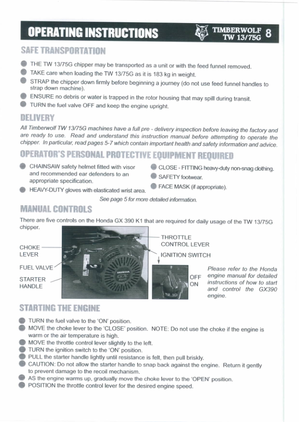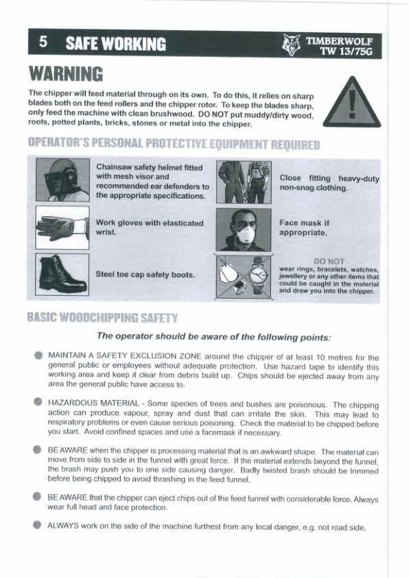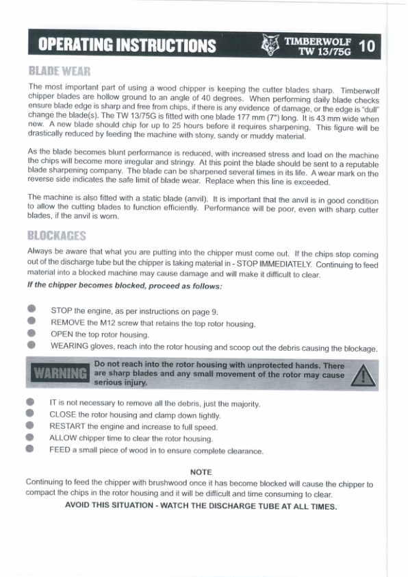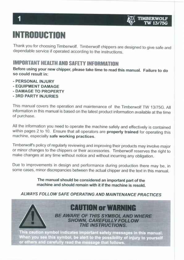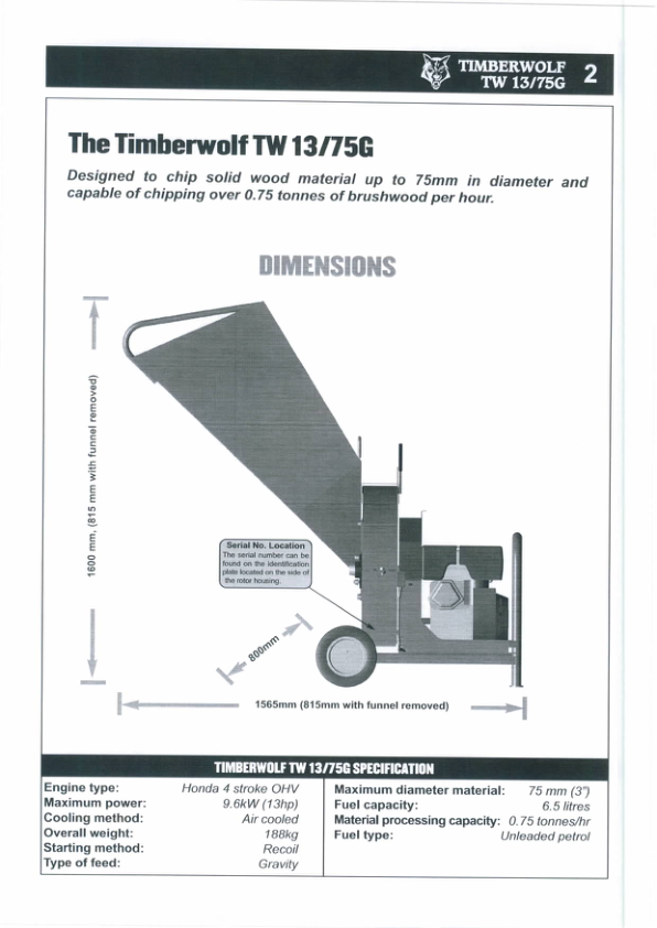 Timberwolf TW13 75G Wood Chipper Instruction Operation Manual