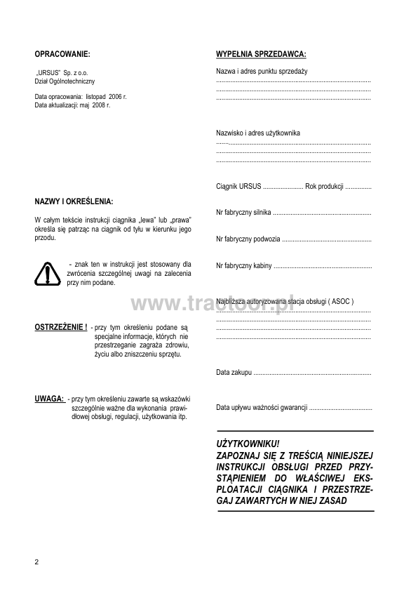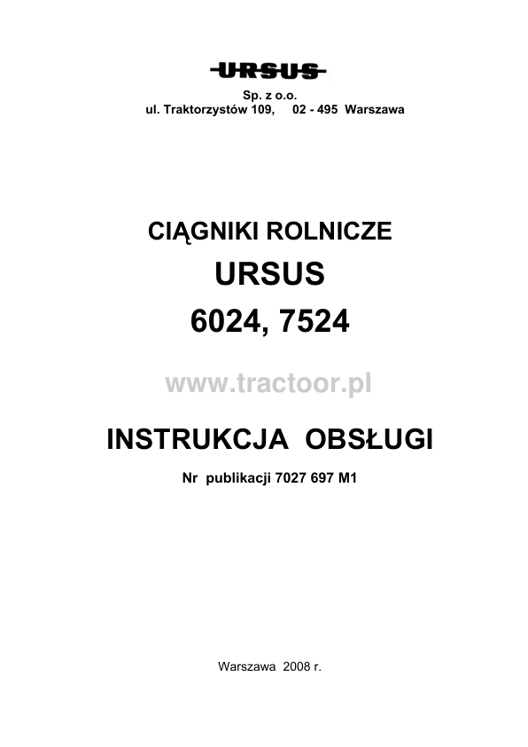 Ursus 6024 7524 Tractor Operators Manual PL