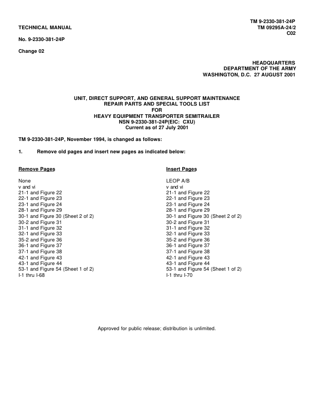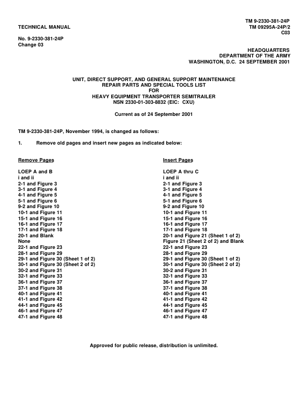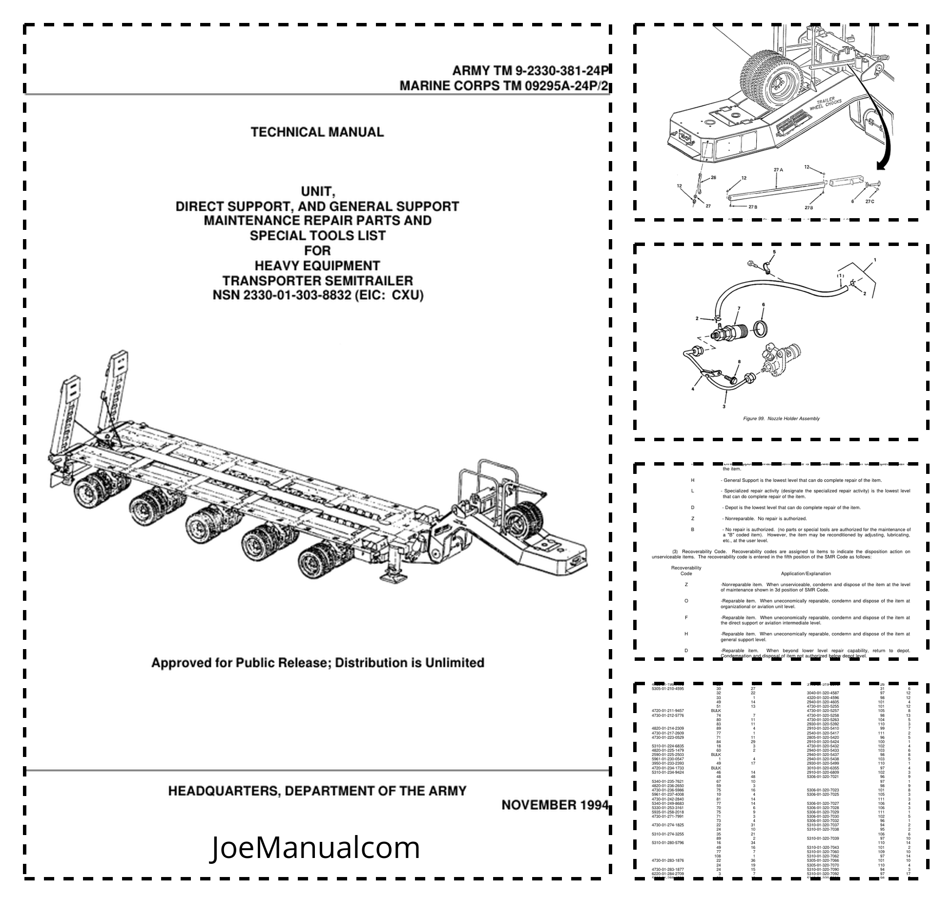 US Army TM 9-2330-381-24P Heavy Equipment Transporter Semitrailer Parts Manual