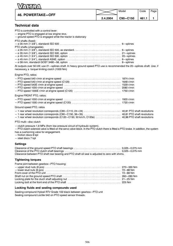 Valtra C90 C100 C110 C120 C130 C150 Tractor Service Manual