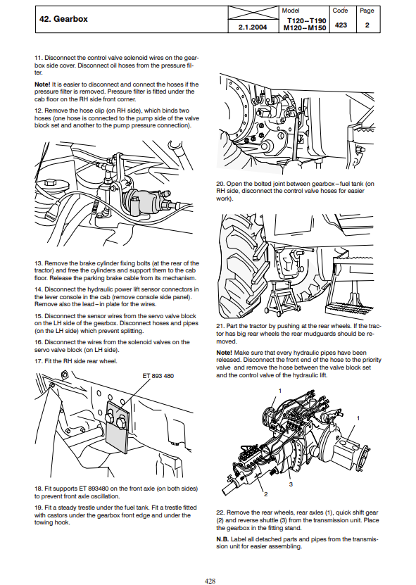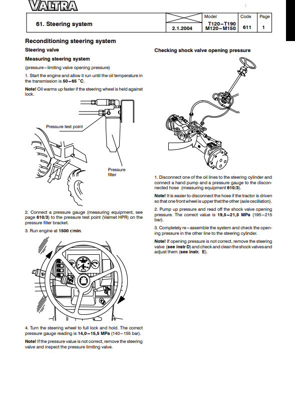 Valtra M120 M130 M150 T120 T130 T140 T160 T170 T180 T190 Tractors Service Manual
