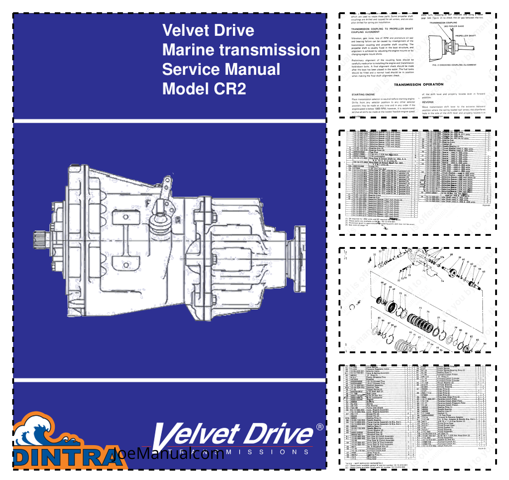 Velvet Drive CR2 Marine Transmission Service Manual is a detailed guide designed to assist in the maintenance and repair of the CR2 marine transmission. This comprehensive manual provides step-by-step instructions, diagrams, and technical specifications to ensure proper servicing and troubleshooting of the transmission. Ideal for marine technicians and boat owners, it covers essential procedures such as fluid changes, gear adjustments, and component inspections, making it an invaluable resource for maintaining optimal performance of the Velvet Drive CR2 transmission. Whether for routine maintenance or complex repairs, this manual offers the necessary guidance to keep your marine transmission functioning smoothly and efficiently.