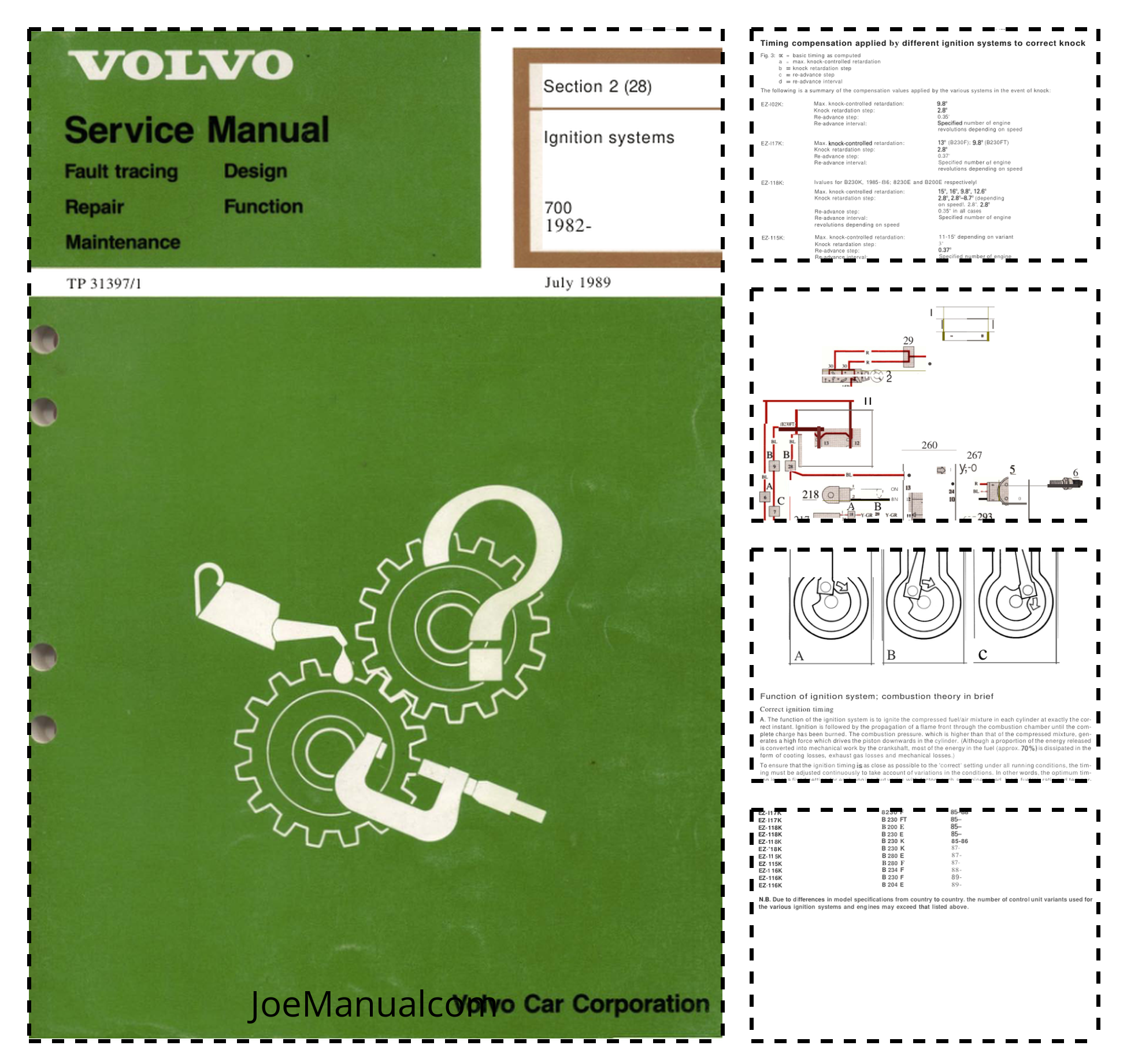 Volvo 819E B23E B23FT B28S B28EIF B230A 8230E B230F Engines Service Manual Section 2 Ignition Systems