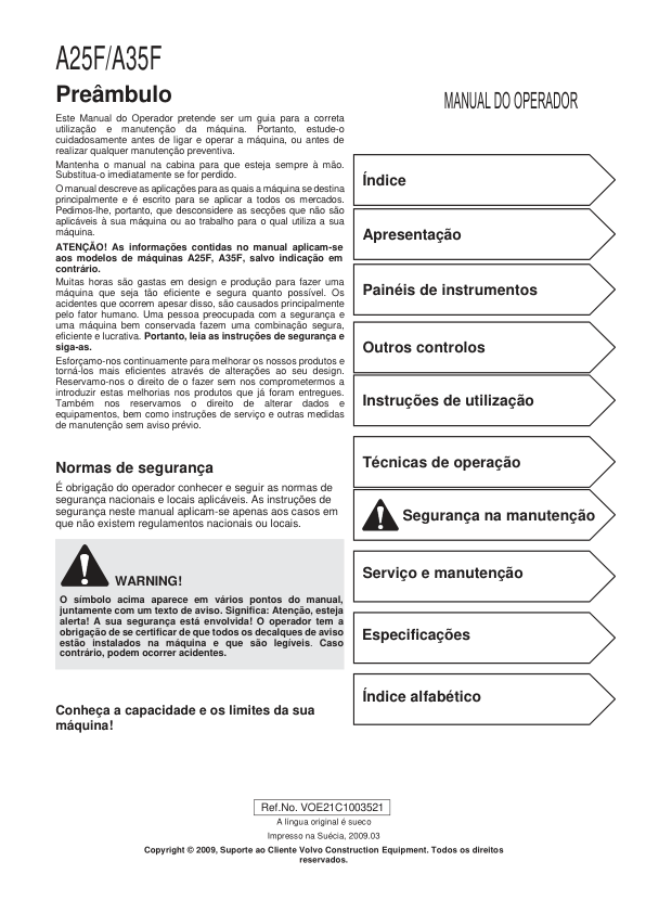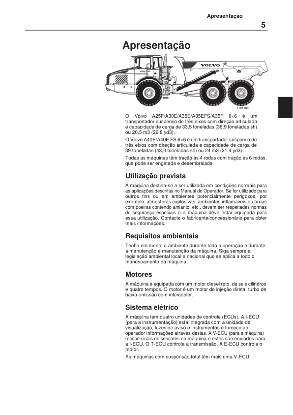 Volvo A25F A35F Articulated Hauler Operators Manual PT