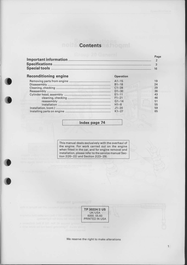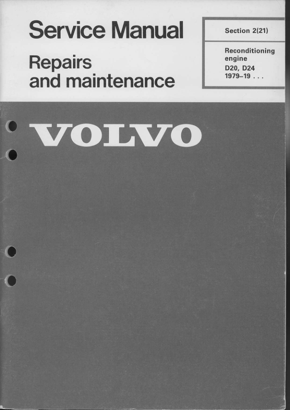 Volvo D20 D24 Engines Service Manual Reconditioning engine