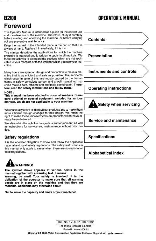 Volvo EC210B Excavator Operators Manual SN 14130-