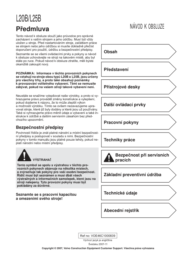 Volvo L20B L25B Wheel Loader Operators Manual CZ