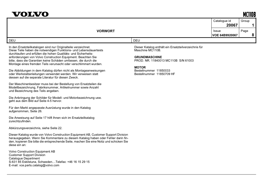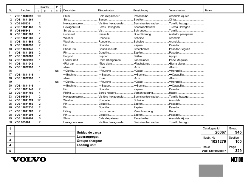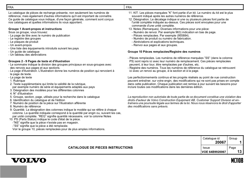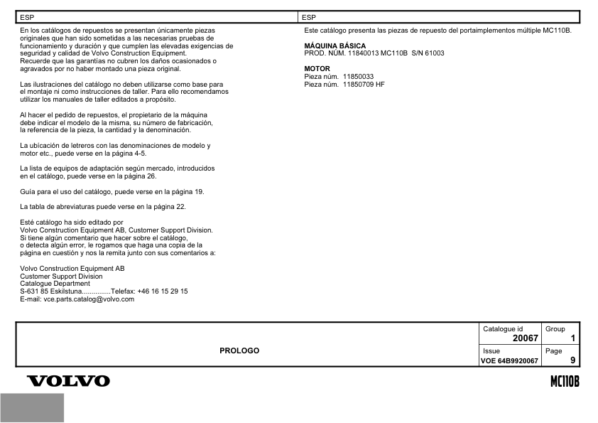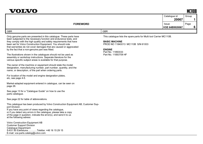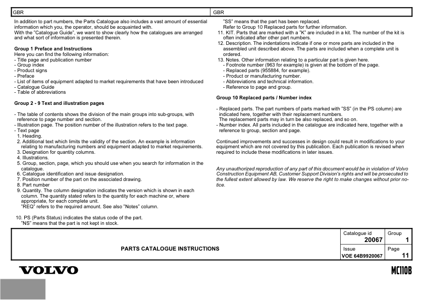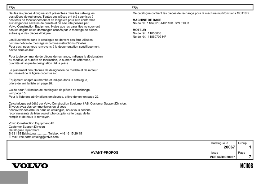 Volvo MC110B Skidsteer Parts Catalog