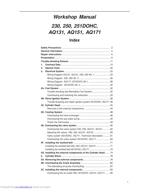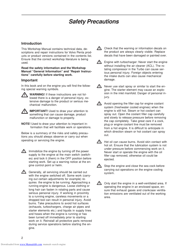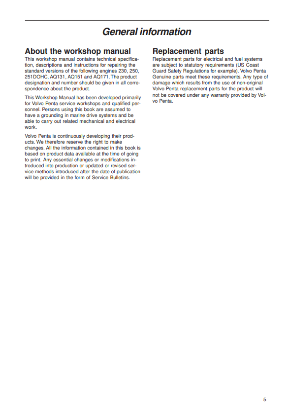 Volvo Penta 230 250 251 DOHC AQ131 AQ151 AQ171 Engine Workshop Manual