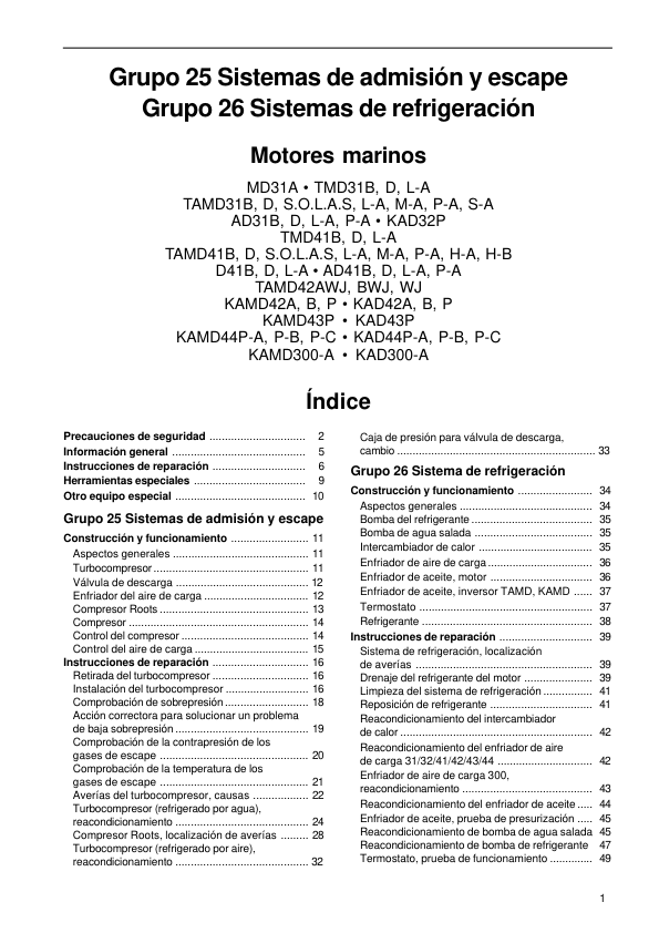 Volvo Penta 31 32 41 42 43 44 300 Series Intake exhaust cooling systems Workshop Manual ES