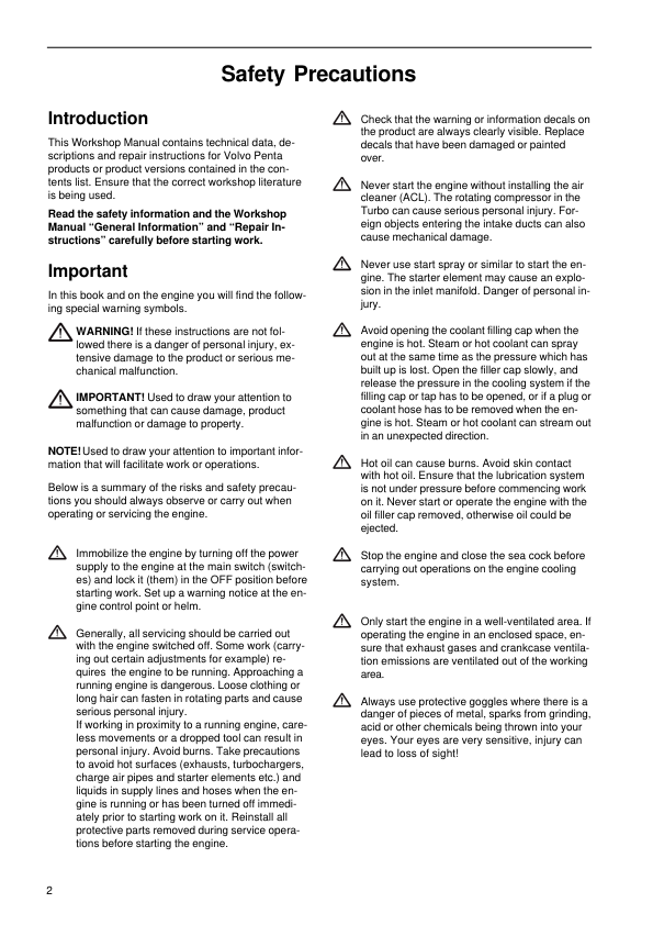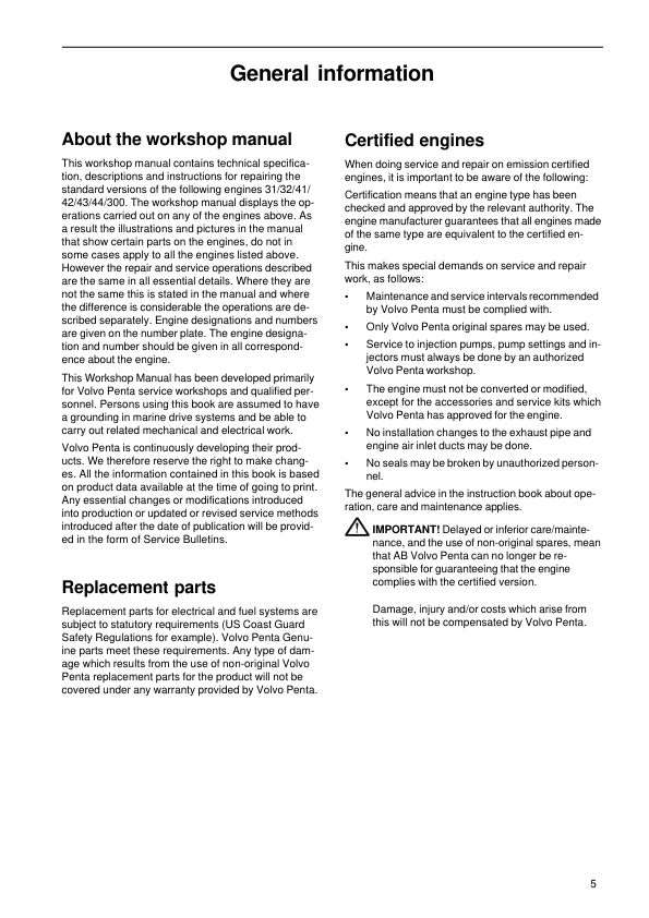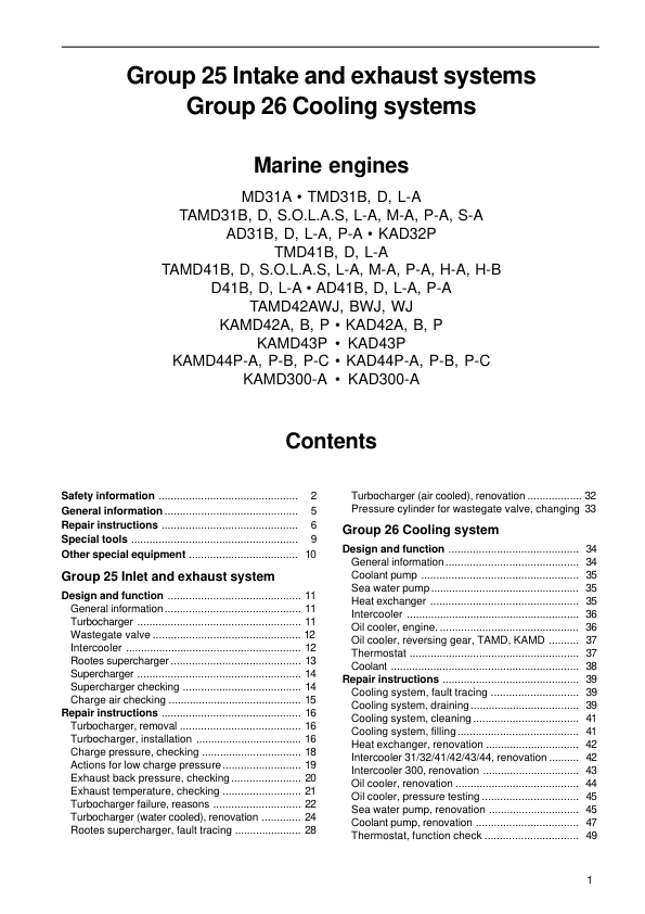 Volvo Penta 31 32 41 42 43 44 300 Series Intake exhaust cooling systems Workshop Manual
