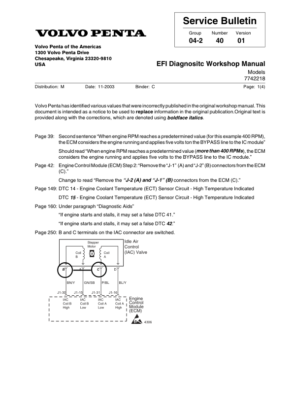 Volvo Penta 4.3GXi-A B C D – 8.1Gi-A B C D, DPX375420-B EFI Diagnostic Woskshop Manual