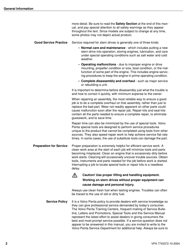 Volvo Penta 5.0GL-ABCDE- 5.7GXI-A B C D F Engine Workshop Manual