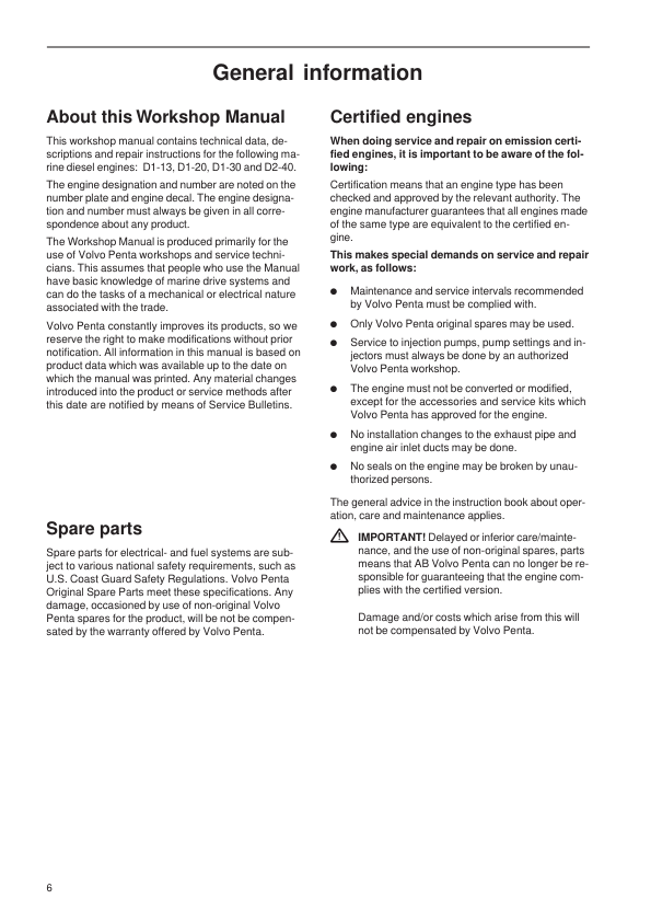 Volvo Penta D1-13 D1-20 D1-30 D2-40 Engine Group 21-26 30 Workshop Manual