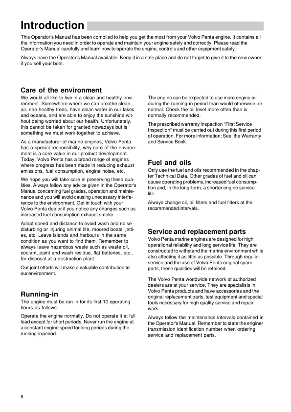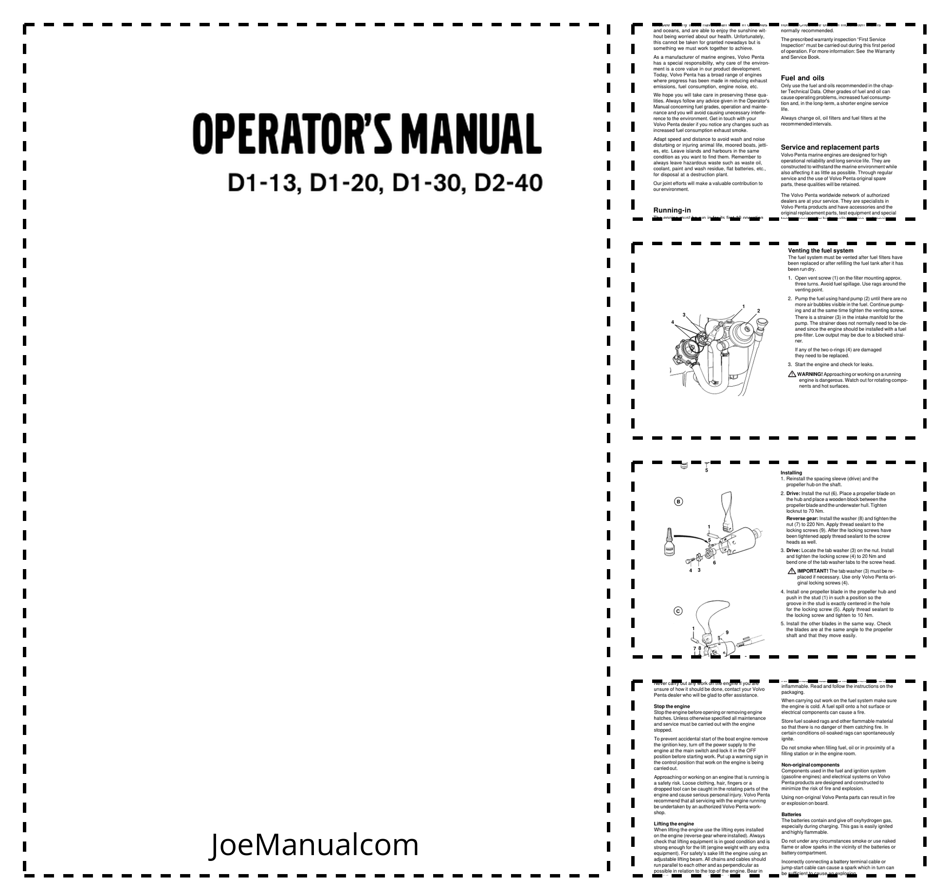 Volvo Penta D1-13 D1-20 D1-30 D2-40 Engines Operators Manual