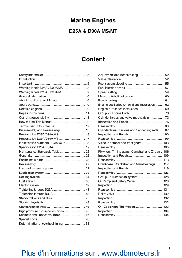 Volvo Penta D25A MS MT D30A MS MT Engine Woskshop Manual