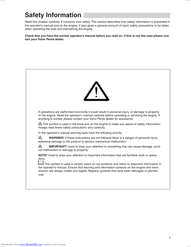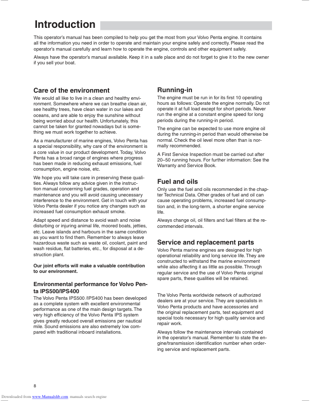 Volvo Penta IPS 350 400 450 500 600 Engine Operators Manua