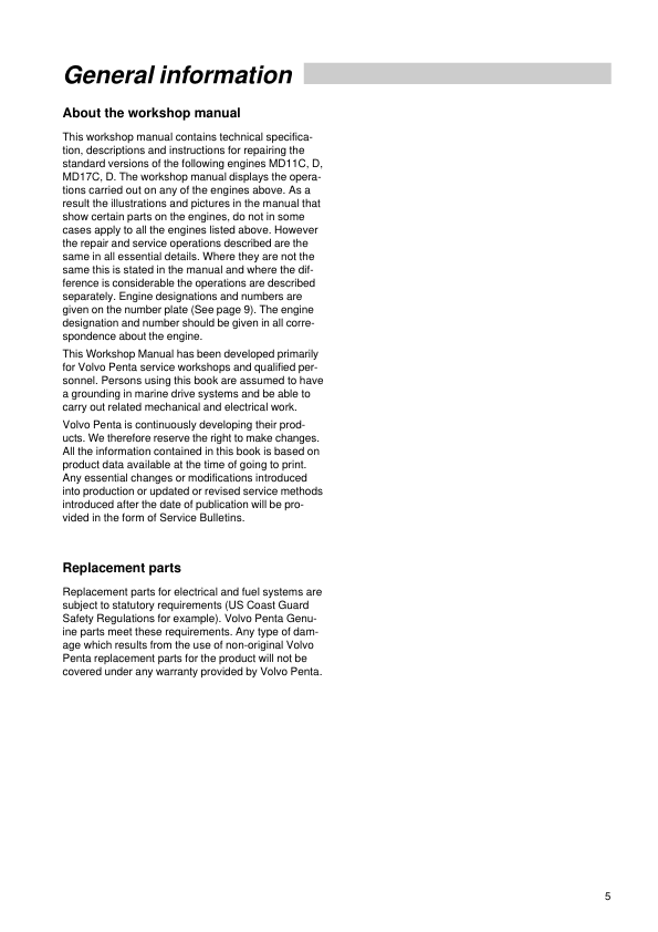 Volvo Penta MD11C D MD17C D Engine unit Workshop Manual