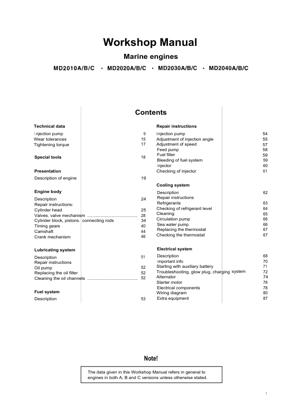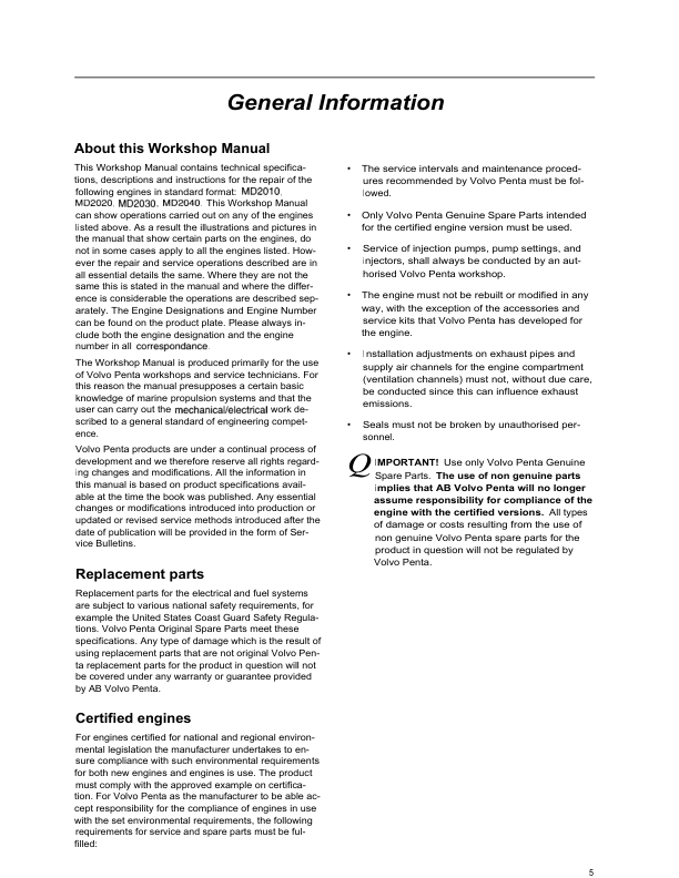 Volvo Penta MD2010 MD2020 MD2030 MD2040 Engine Workshop Manual