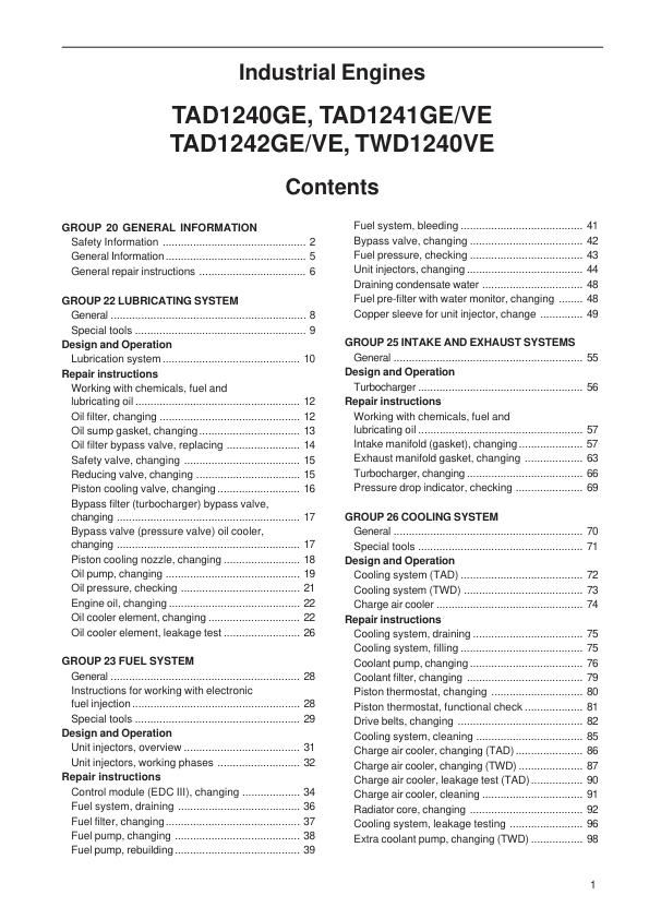 Volvo Penta TAD1240GE TAD1241GEVE TAD1242GEVE TWD1240VE Engine Group 22-26 Workshop Manual