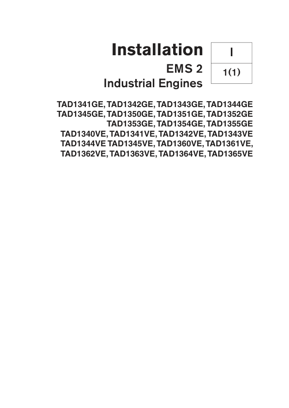 Volvo Penta TAD1341GE-TAD1355GE TAD1340VE-TAD1365VE EMS 2 Industrial Engines Installation Manual