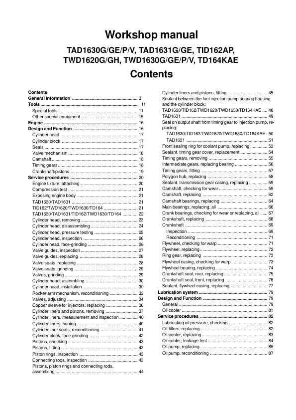 Volvo Penta TAD1630G GE P V TAD 1631G GE TID162AP TWD1620G GH TWD1630G GE P V TD164KAE Workshop Manual