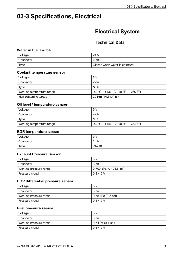 Volvo Penta TAD540 550 570 840 850 870 VE Engine Group 30 Electrical System Workshop Manual