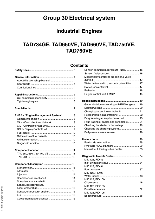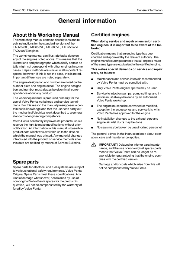 Volvo Penta TAD650VE TAD734GE TAD750VE TAD760VE Engine Group 30 Workshop Manual