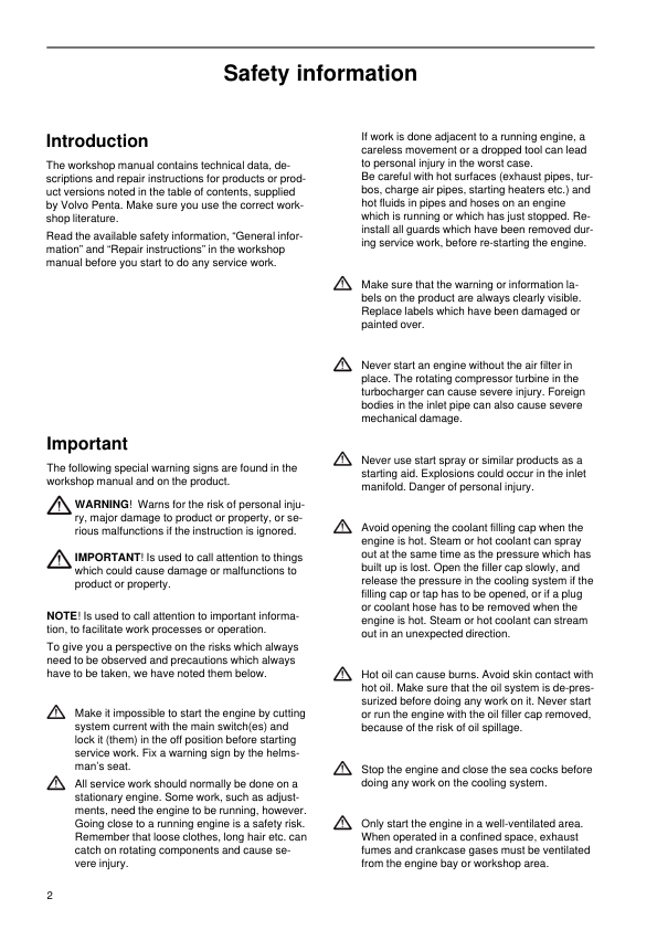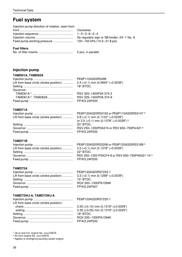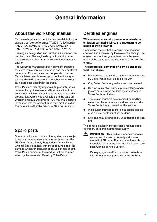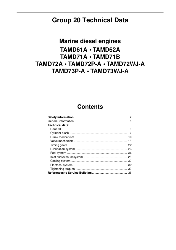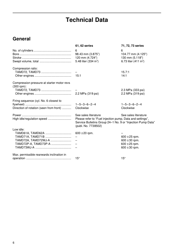 Volvo Penta TAMD61A 71A 71B 722A WJ P-A 83WJ P-A Engines Technical Data Workshop Manual