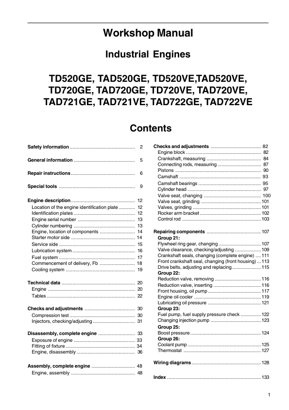 Volvo Penta TD TAD520GE VE 720GE VE 721GE VE 722GE VE Group 21-26 Workshop Manual