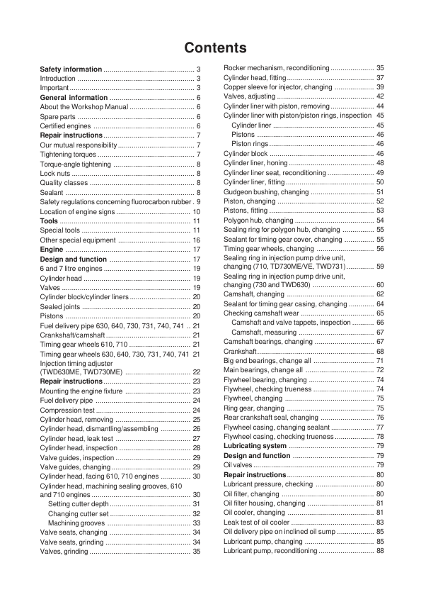 Volvo Penta TD TWD 610G P V 630ME VE 640VE 730ME VE 730G P V 731ME 740GE VE Engine Woskshop Manual
