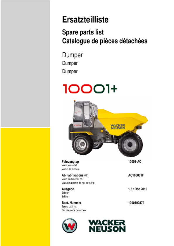 Wacker Neuson 10001 Dumper Parts Catalog Rev 12-2010