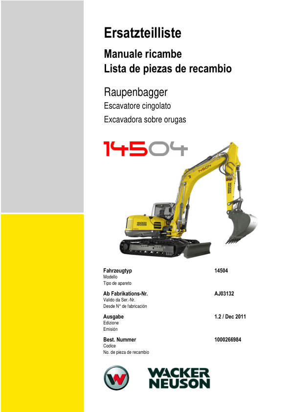 Wacker Neuson 14504 Crawler Excavator Parts Catalog SN from AJ03132 v1.2