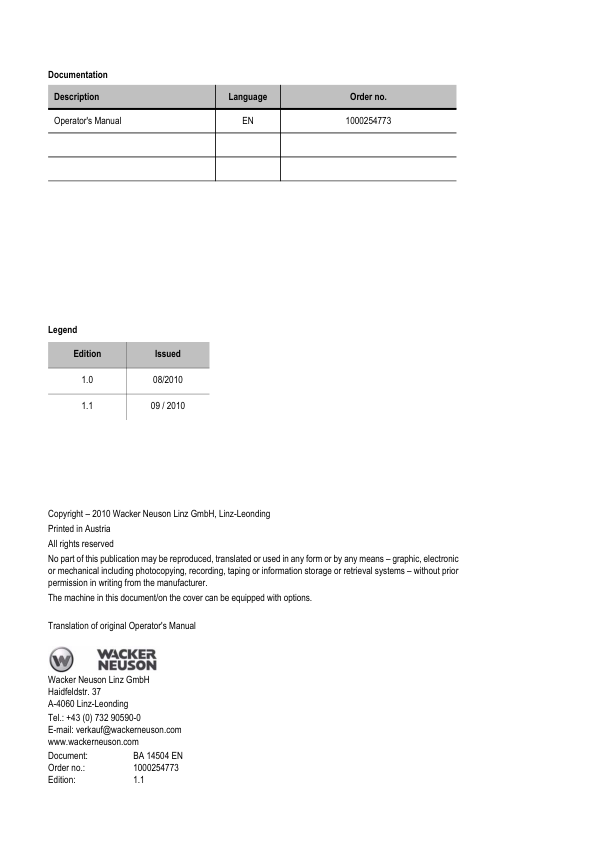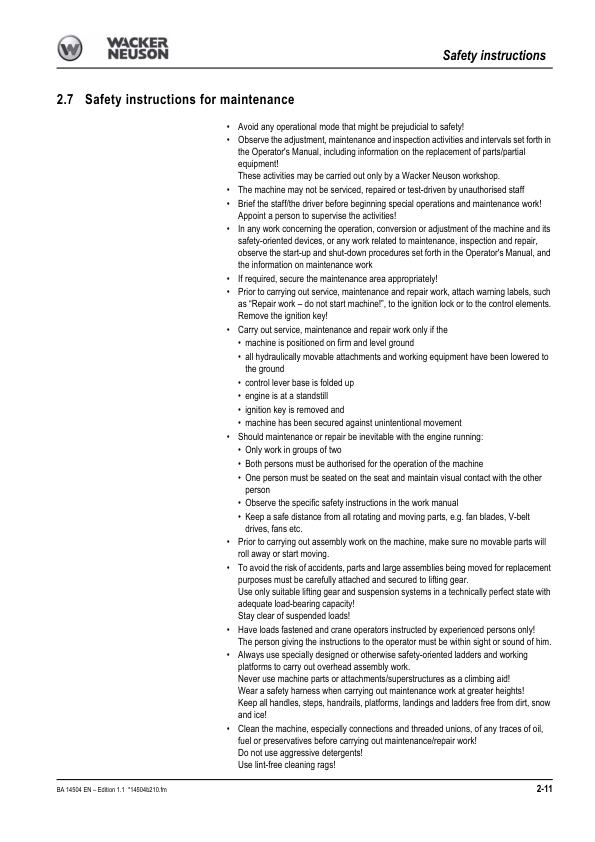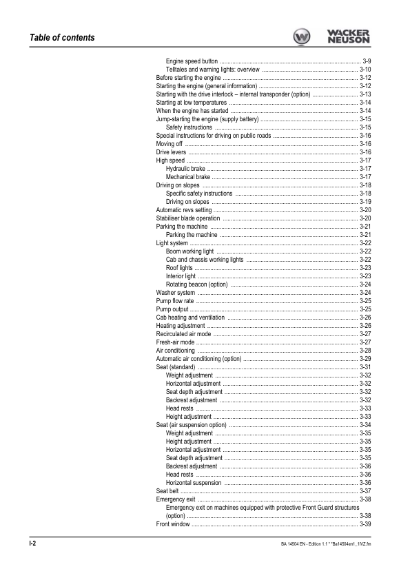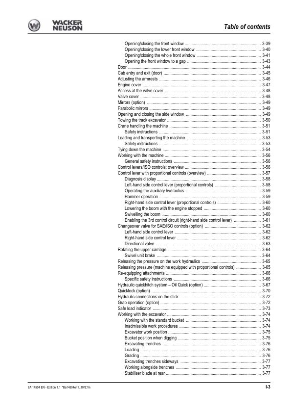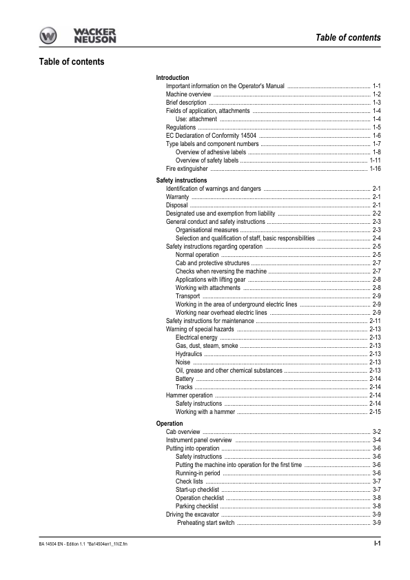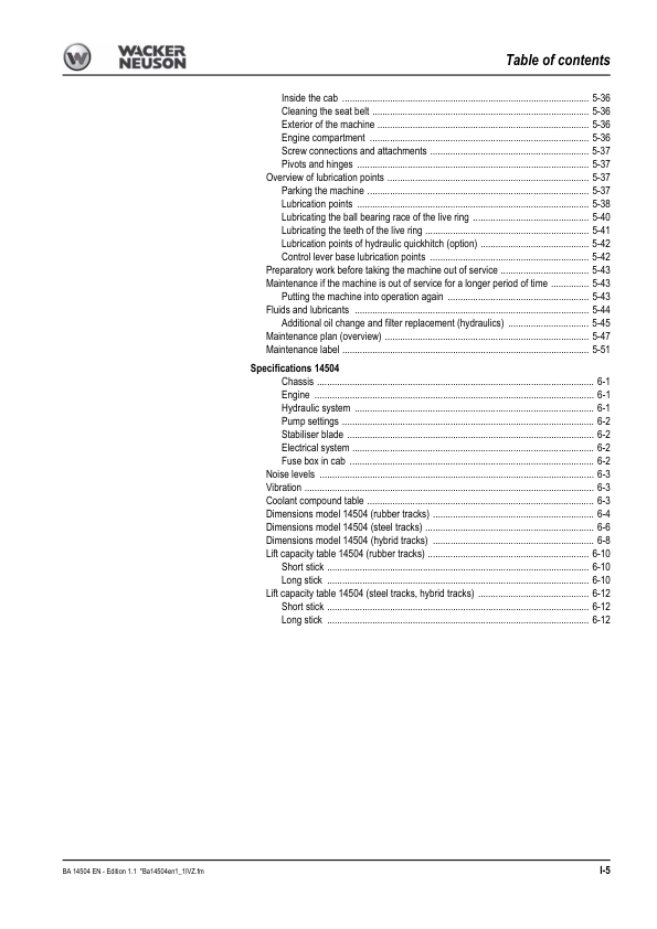 Wacker Neuson 14504 Track Excavator Operators Manual
