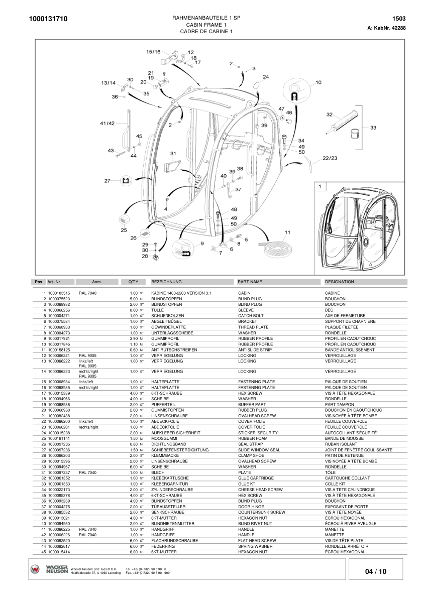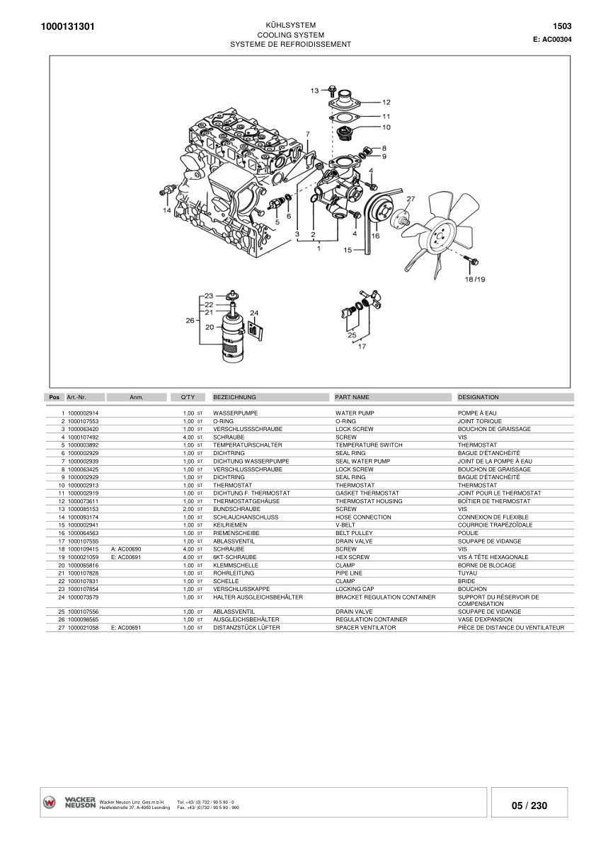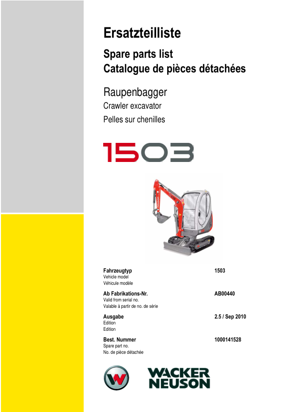 Wacker Neuson 1503 Crawler Excavator Parts Catalog