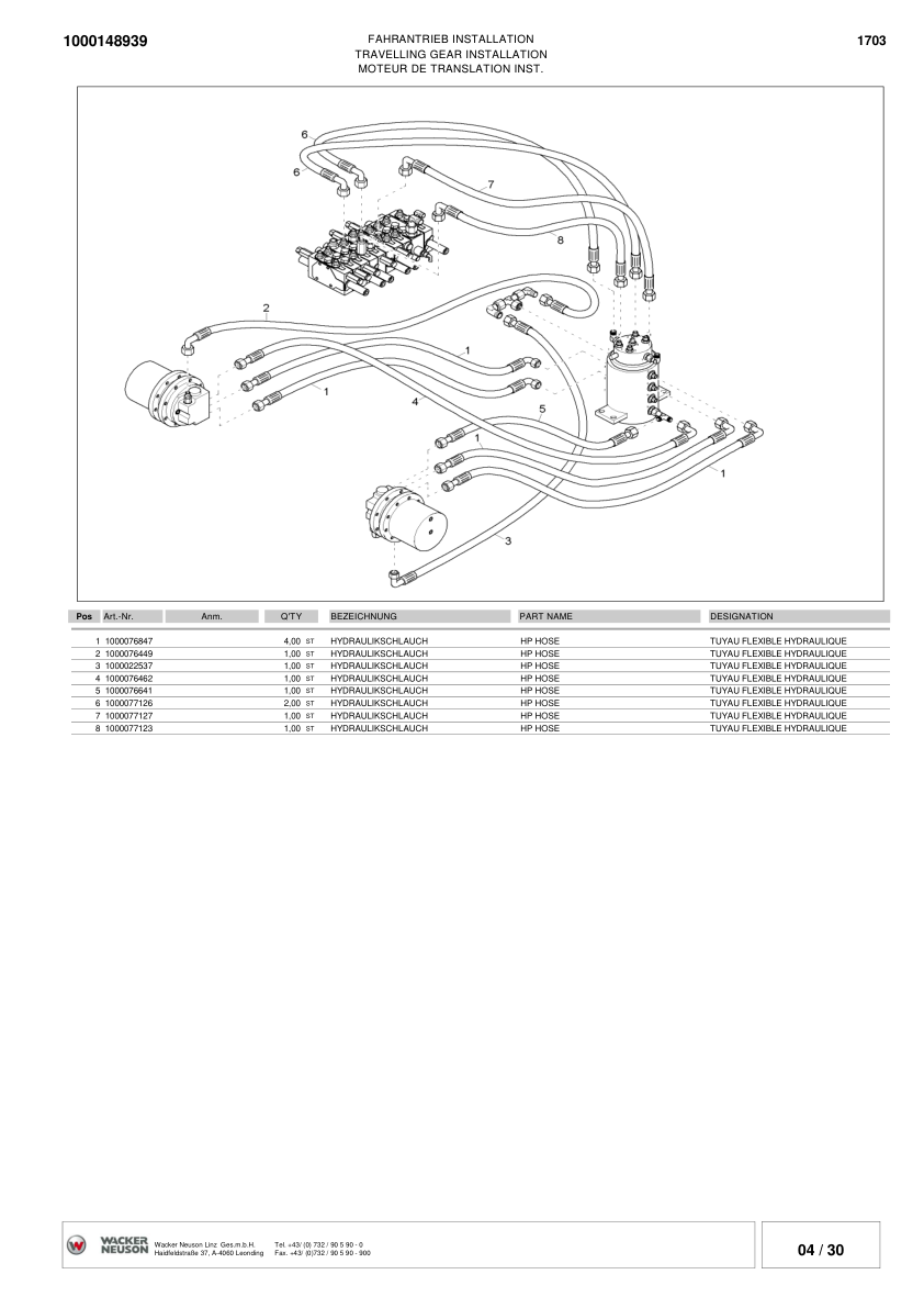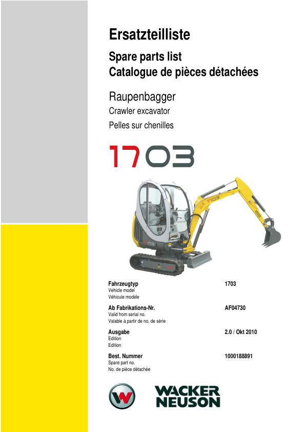 Wacker Neuson 1703 Crawler Excavator Parts Catalog Rev 10-2010