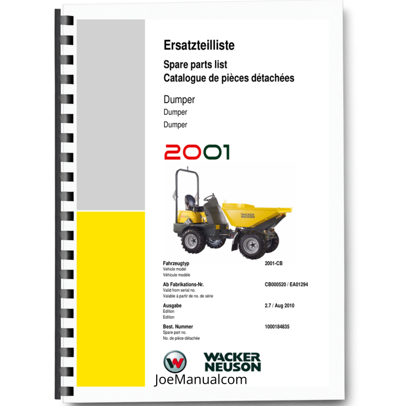 Wacker Neuson 2001 Dumper Parts Catalog SN from CB000520 EA01294 v2.7 Printed Book