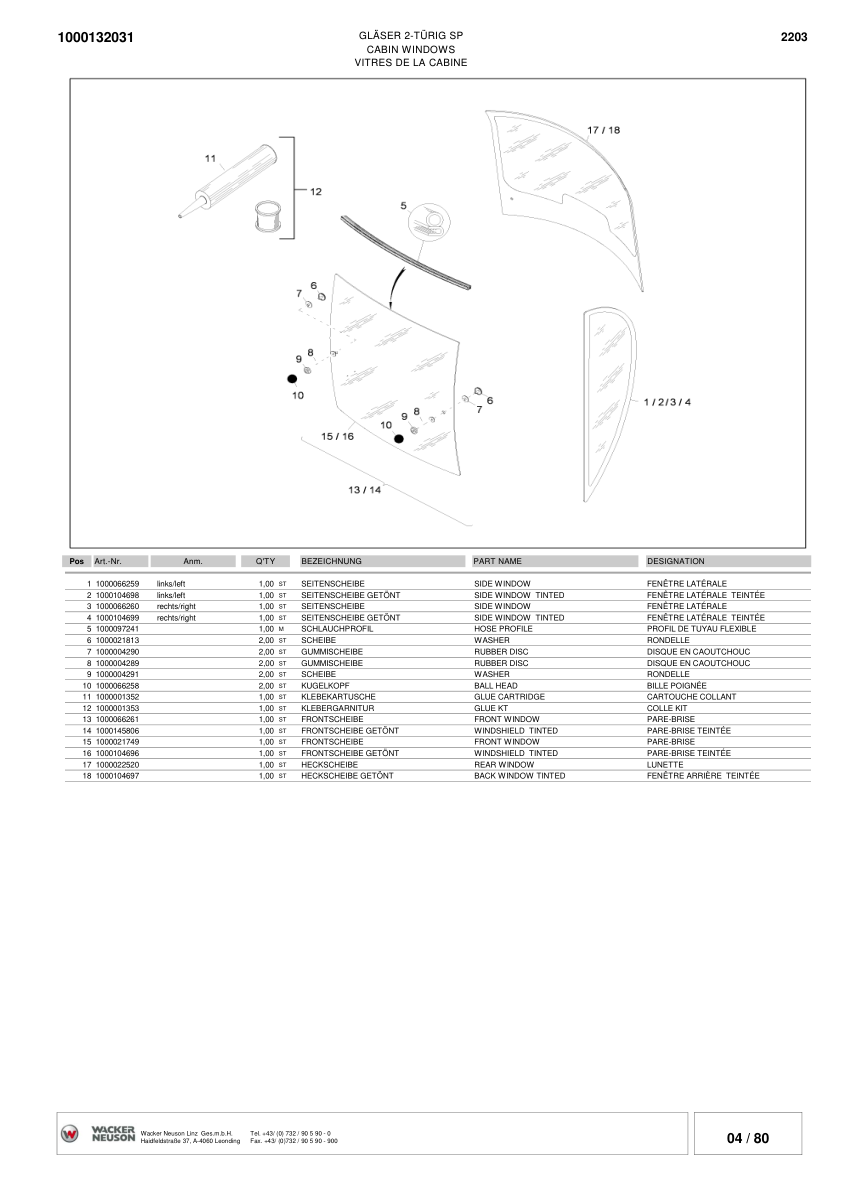 Wacker Neuson 2203 Crawler Excavator Parts Catalog