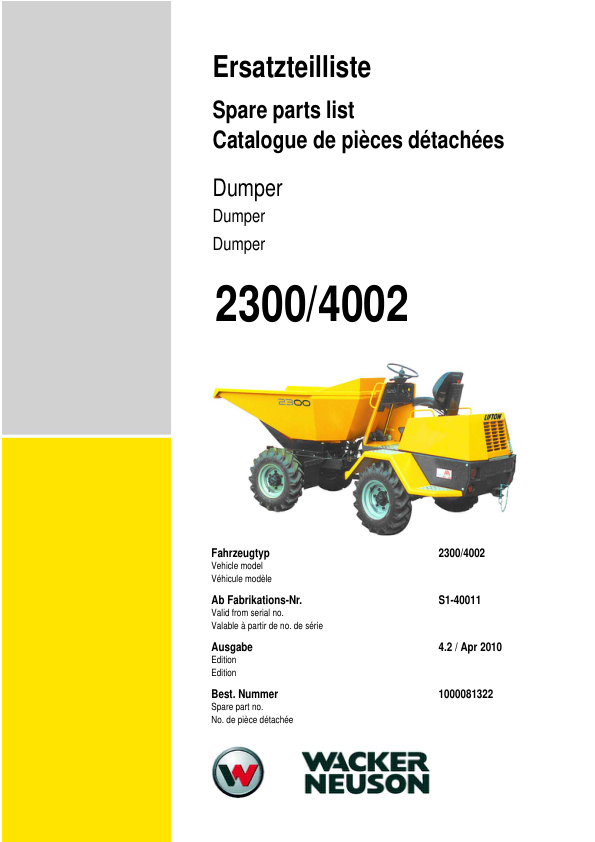 Wacker Neuson 2300 4002 Dumper Parts Catalog SN from S1-40011 v4.2